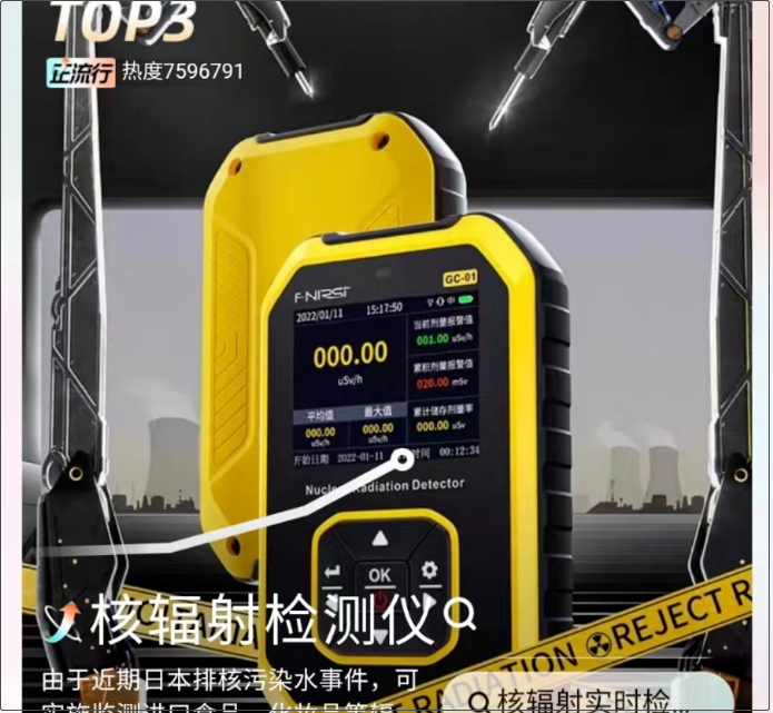 据九派新闻:记者发现,“核辐射检测仪”词条已经登上某宝热搜榜单。