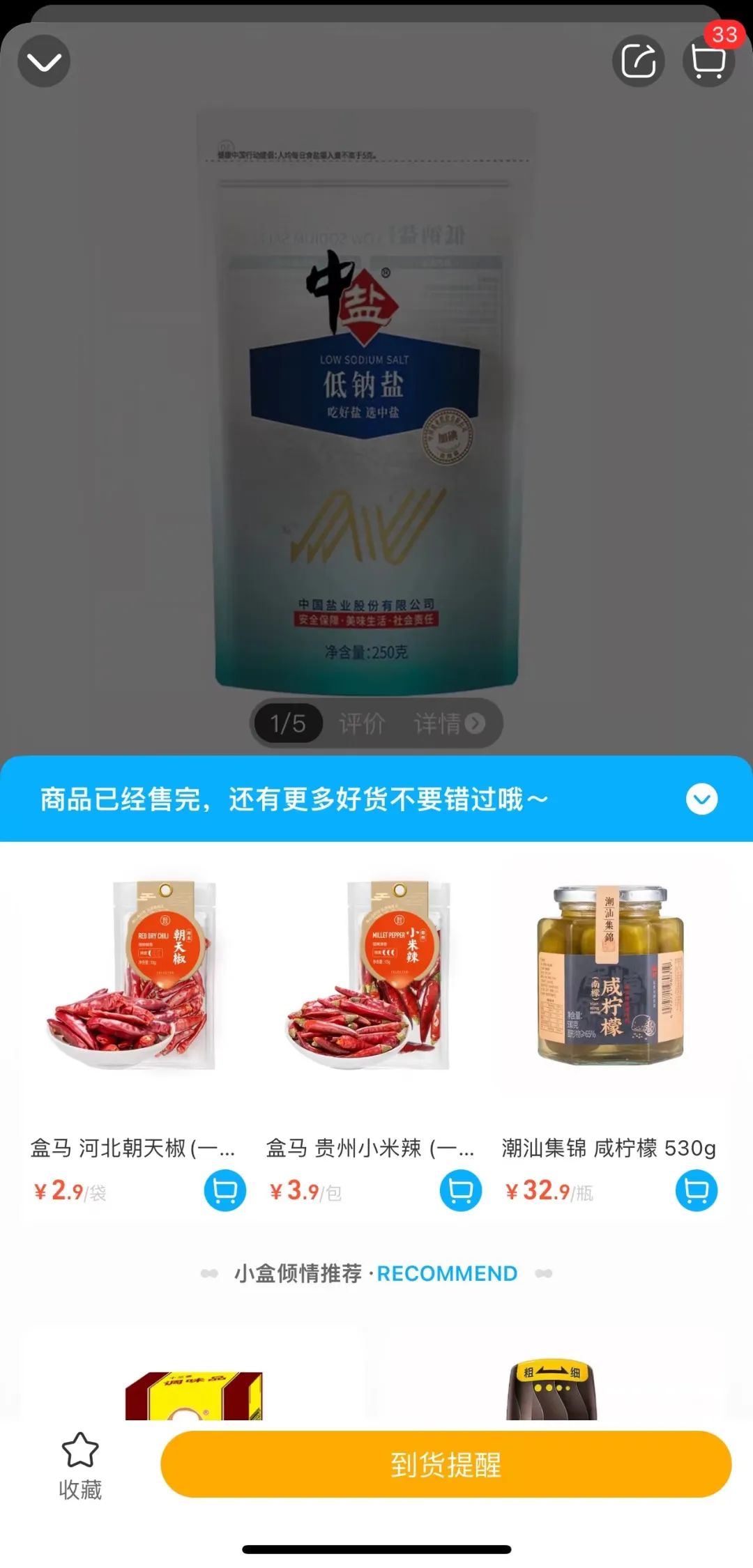 记者查看发现,多个生鲜电商平台的低钠盐、无碘盐显示“缺货”“补货中”。