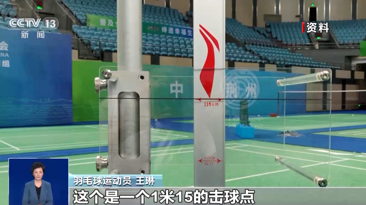 羽毛球运动员 王琳:发球裁判通过两块1米15高度的平行线的板,然后通过两块板垂直成,两条直线重合成一条直线的时候,这个是一个1米15的击球点。裁判通过这一条线来看我们在发球击球的一瞬间,是否超过1米15的高度。