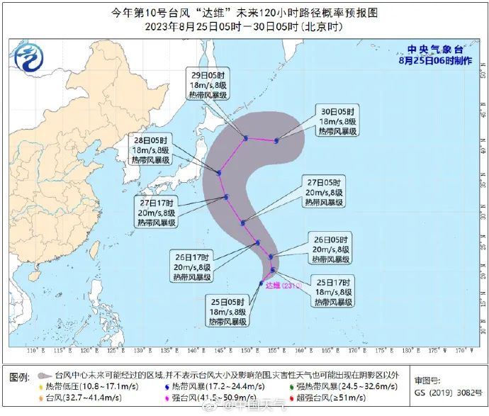 中央气象台24日15时制作的“苏拉”路径和强度预报