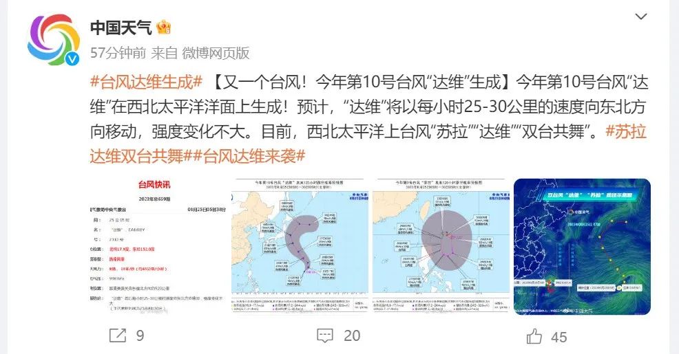 8月24日14时59分,中央气象台发布台风快讯,当天早上在菲律宾以东洋面生成的热带低压,已在当天14时加强为今年第9号台风“苏拉 ”(英文名称:Saola;命名国家:越南;名称含义:越南最近发现的一种罕有的珍贵动物)。按现有气象资料,广东省气象部门表示“苏拉”后期路径有较大不确定性,将持续关注其动向。