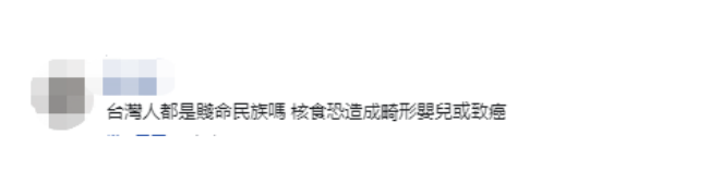 有岛内网民对此表示,“台湾人都是贱命民族吗?核食恐造成畸形婴儿或致癌。”↓