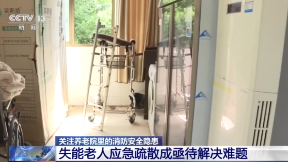 除了医院之外,养老场所人员疏散环节也存在着许多隐患,记者在随国家消防救援局派出的检查组检查中也发现,养老场所除了存在外窗加设铁栅栏、疏散通道上锁、消防控制室无人值班等消防安全风险外,失能老人如何疏散成为亟待破解的难题。