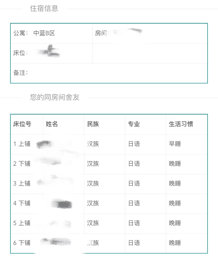 此外,还能看到舍友的个人生活及作息习惯 ,“舍友的个人信息,比如说是晚睡还是早睡、有没有抽烟习惯这些,都能看到。”