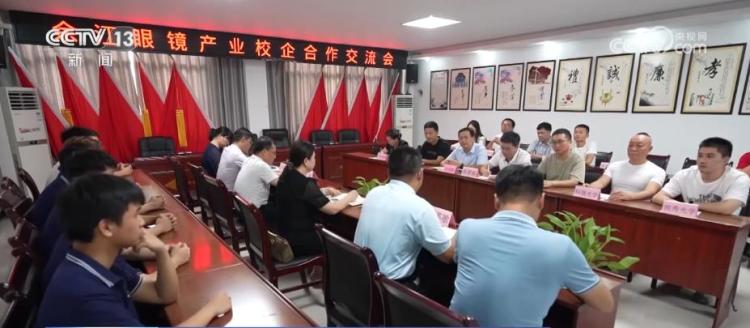 在产业园,像这样的校企交流会几乎每个月都会举行。2019年,鹰潭应用工程学校开设了全国首个眼镜制作和研究方向专业,将专业建在产业上,源源不断地为鹰潭眼镜产业输送人才。