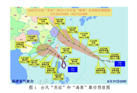 今年第 9 号台风“苏拉”8 时中心距离台湾省鹅銮鼻东南方向约 460 公里(北纬 18.6 度、东经 123.5度),中心附近最大风力 14 级(45 米/秒,强台风级)。预计“苏拉”将以每小时 10 公里左右的速度向西北方向移动,强度将继续增强,逐渐向福建南部到广东中部一带沿海靠近(图 1)。