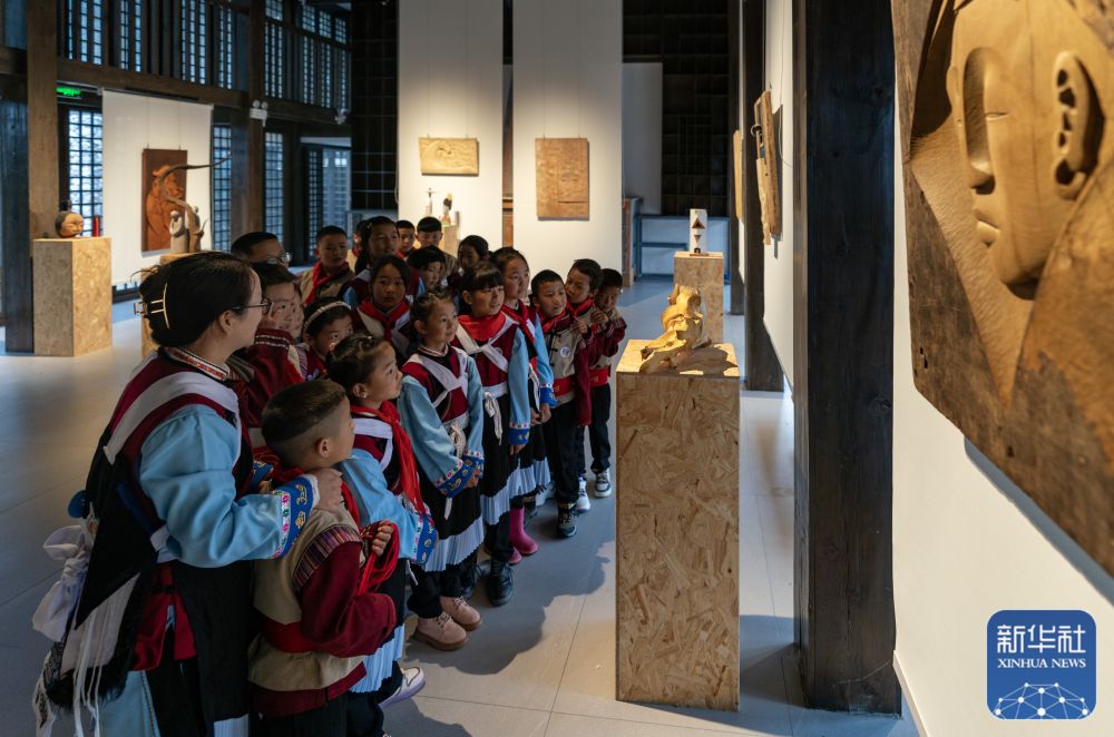 8月29日,云南省丽江市玉龙纳西族自治县玉湖完小部分师生在研学基地参观。新华社记者 陈欣波 摄
