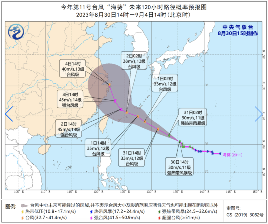 11号台风“海葵”向东海海域靠近