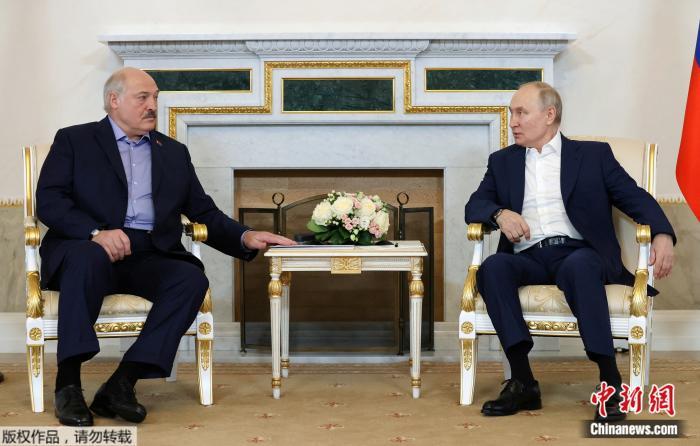 当地时间7月23日,俄罗斯总统普京与白俄罗斯总统卢卡申科在圣彼得堡会晤。