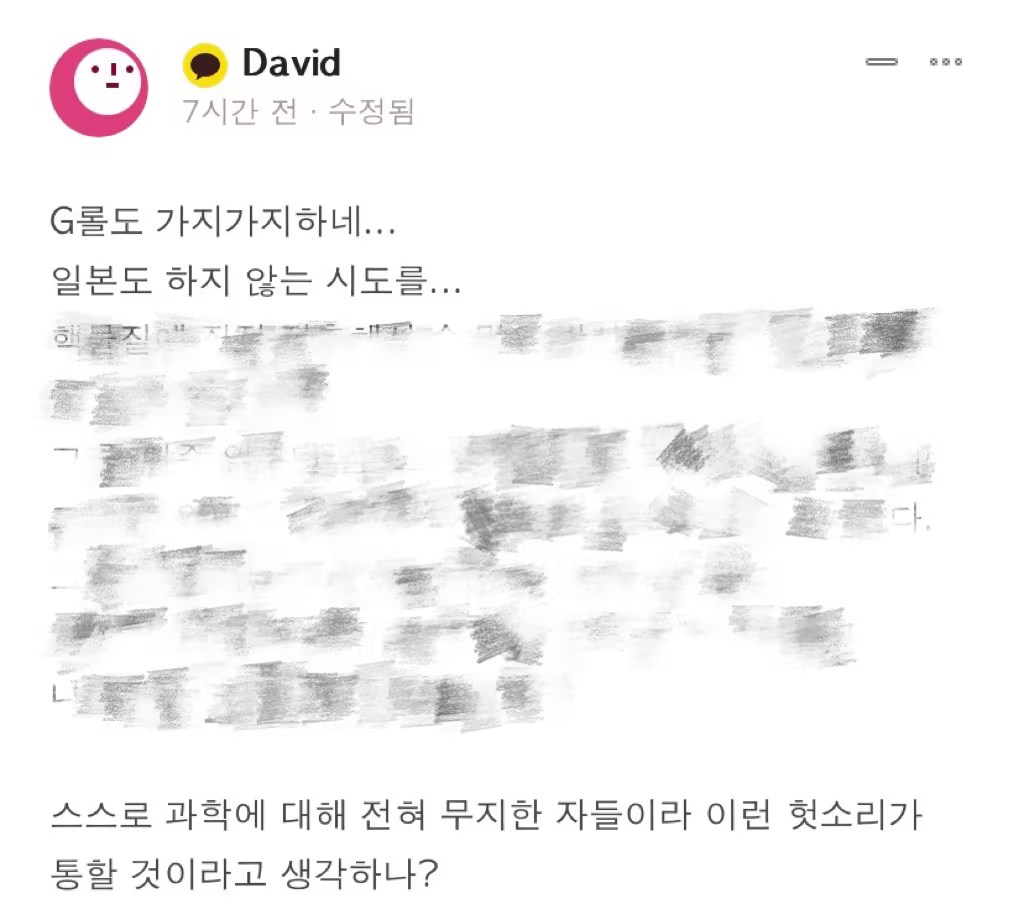 韩德洙的话传开后,不少韩国网友在社交平台发帖吐槽。有人讽刺道,“真是花样翻新啊,一个连科学都不懂的人,这种胡言乱语说得通吗?”