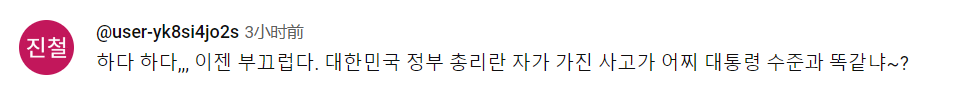 还有人直接批评,“真是越来越让人感到羞愧,韩国的总统和总理水平真是都差不多”。