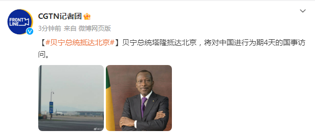 贝宁总统塔隆抵达北京,将对中国进行为期4天的国事访问。