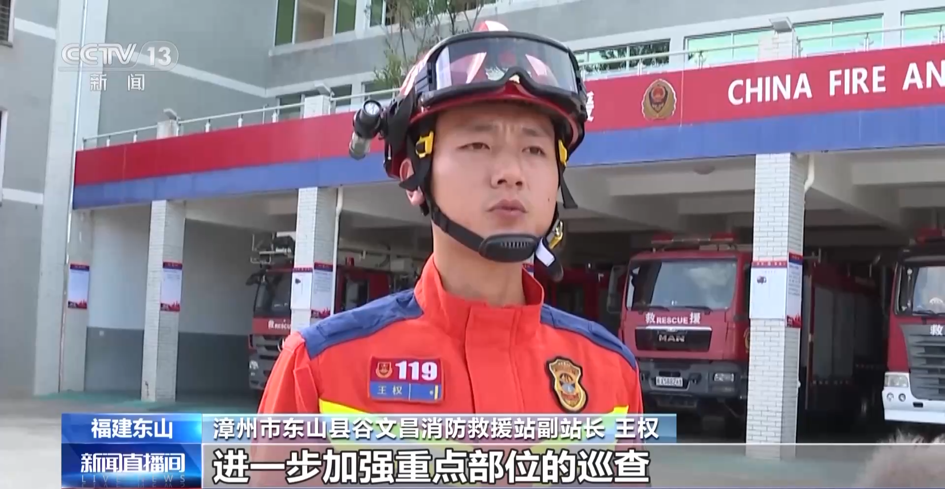 漳州市东山县谷文昌消防救援站副站长 王权:我们还要根据风雨情况进一步加强重点部位的巡查,如出现险情将第一时间进行抢险。