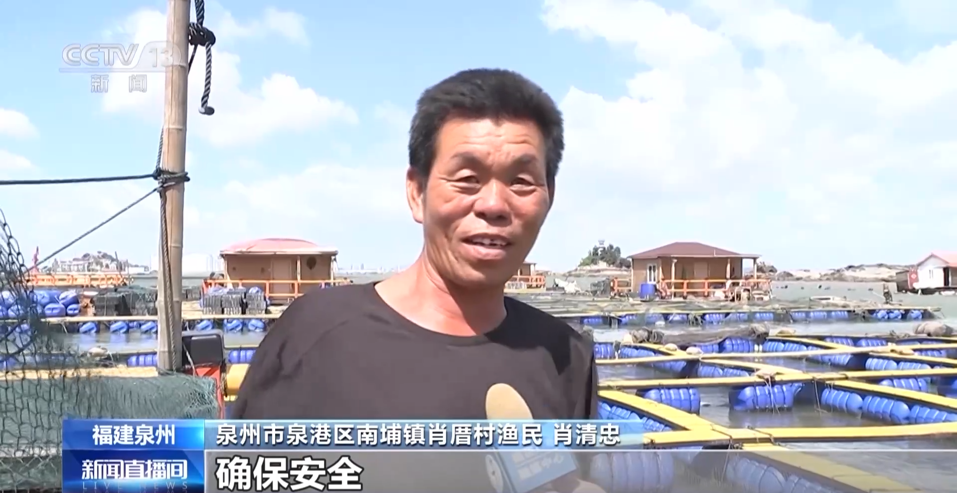 泉州市泉港区南埔镇肖厝村渔民 肖清忠:把渔排全部提前加固好了,把重要的东西全部带上岸,确保安全。