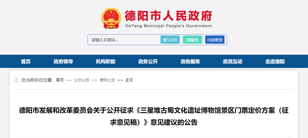 《三星堆古蜀文化遗址博物馆景区门票定价方案(征求意见稿)》