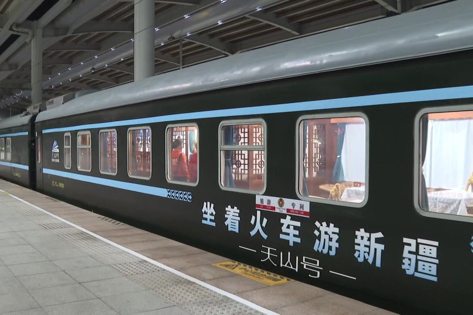 随着“天山号”旅游专列从新疆乌鲁木齐站缓缓驶出,476名游客开启了为期16天的环游之旅,这是新疆铁路今年开行的第103趟旅游专列。今年以来,新疆铁路接待近5万名游客,提前4个月实现全年开行百趟旅游专列的目标。