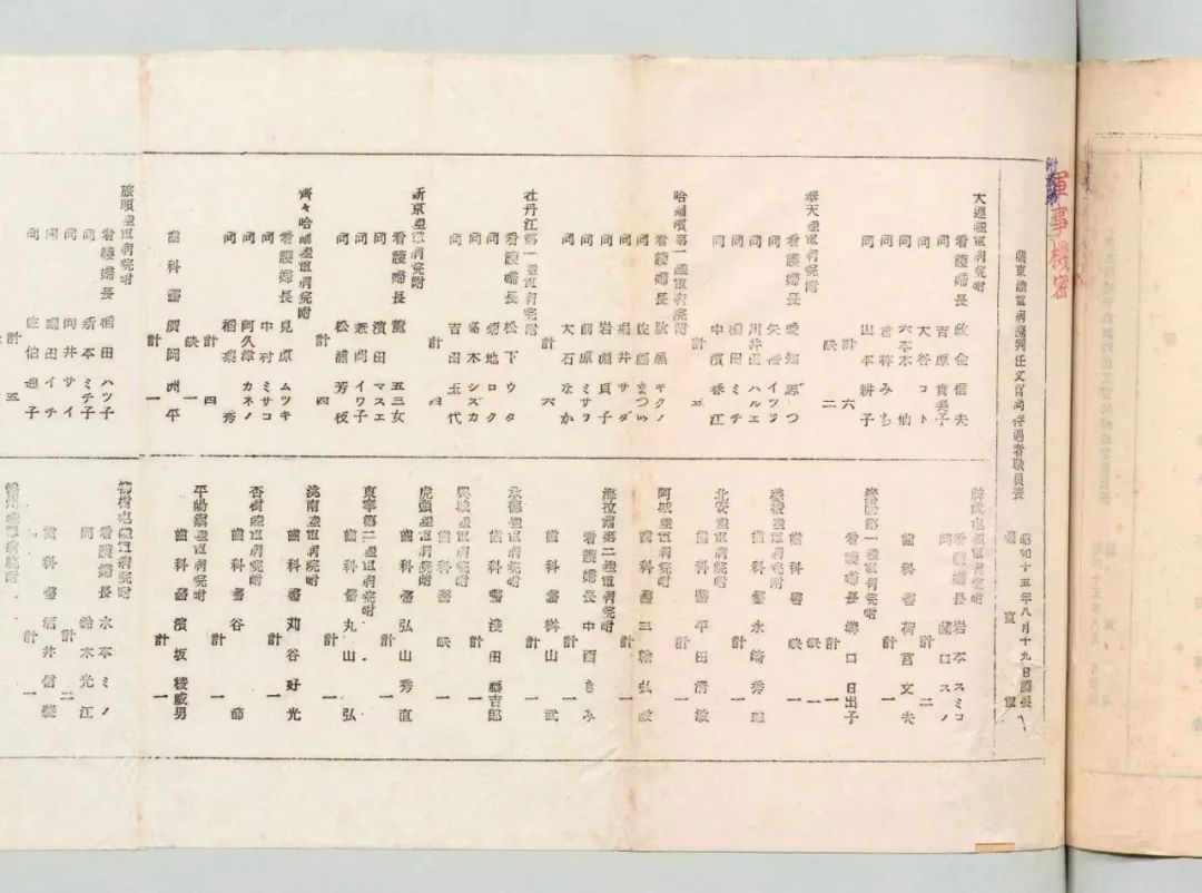 今年8月5日,哈尔滨市侵华日军第七三一部队罪证陈列馆向社会首次公布《日军哈尔滨第一陆军病院原簿》及日军哈尔滨第一陆军病院与七三一部队关联问题研究等新情况。为进一步加强七三一部队医学犯罪协同机构档案的发现、整理与研究工作,七三一陈列馆以《日军哈尔滨第一陆军病院原簿》发现为线索,同日本学者松野诚也开展深度合作,并在日本国立公文书馆又发现了《关东陆军病院将校高等文官职员表》《关东陆军病院判任文官及相同待遇者职员表》,共有6页,印有“军事机密”字样。