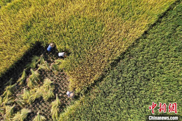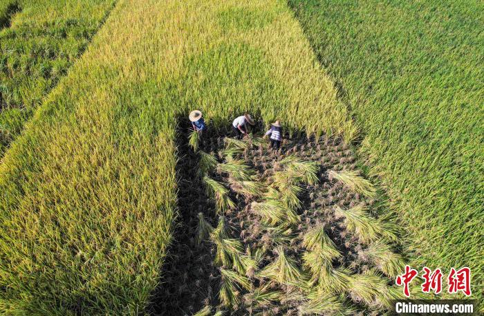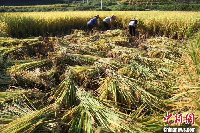 图为施秉县城关镇伍旗村村民在收割稻谷。磨桂宾 摄