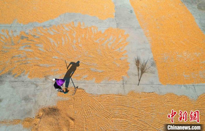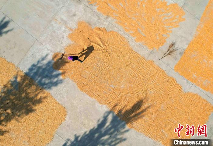 图为施秉县城关镇伍旗村村民在晾晒玉米。磨桂宾 摄