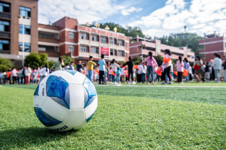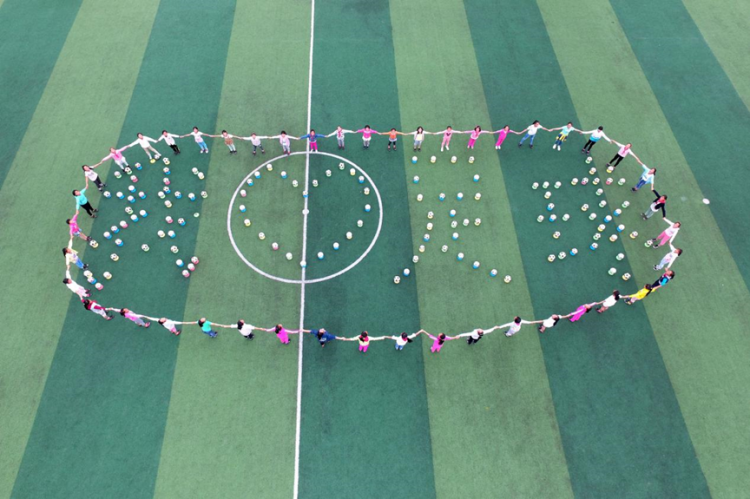 9月1日,在重庆市石柱县三河镇的三河小学,学生们在操场上抛出足球迎接开学。新华社记者 唐奕 摄