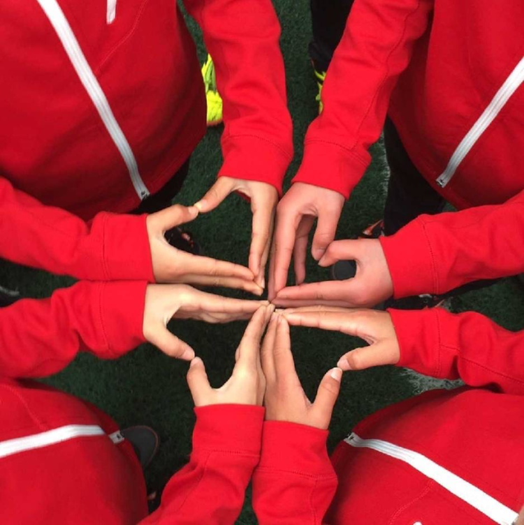孙晓鸣现在使用的微信头像,为当年小队员们在2014年某次训练后手掌比心的合影。受访者供图