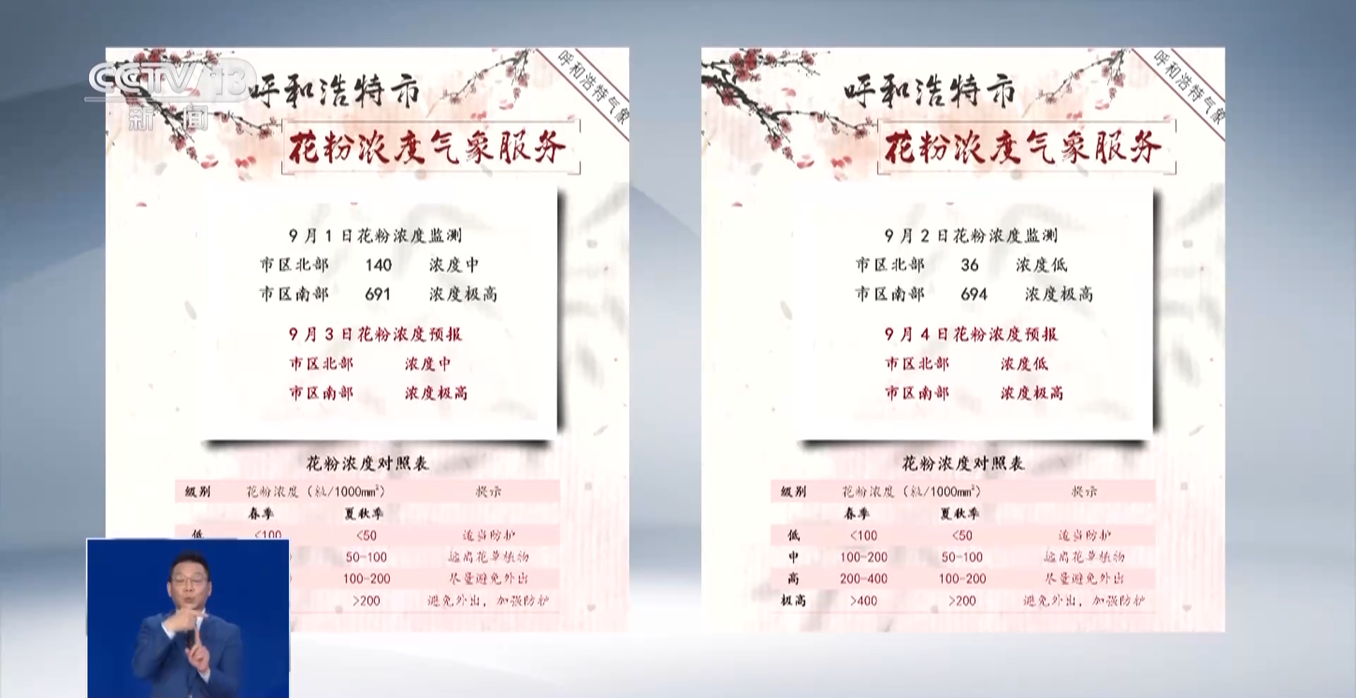 雷暴哮喘多发生在花粉季。呼和浩特市赛罕区气象局发布的花粉浓度实况监测显示:自8月1日起城区花粉浓度持续上升,截至目前,城区南部、城区中部的最高浓度都达到了极高级别,城区东部为很高级别,相较去年同期值均偏高,也创下今年新高。主要以蒿属花粉为主,其次为藜科花粉。据目前草本植物长势及气象条件综合分析,城区花粉浓度仍维持极高浓度,持续至9月中旬。
