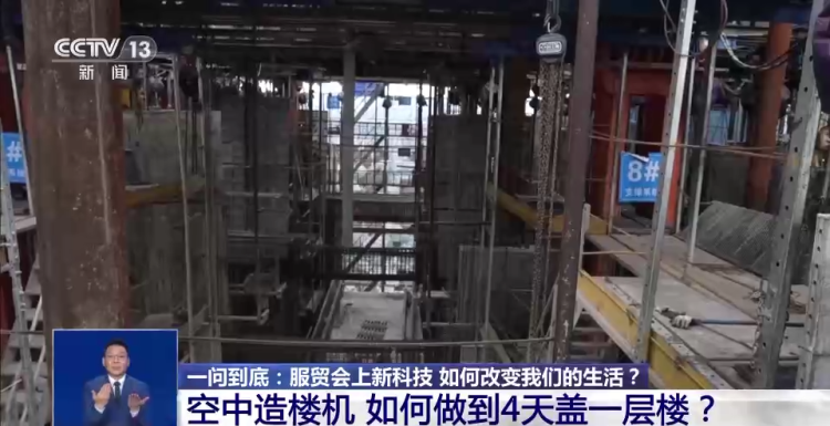 远程操控、精准测量,科技在建筑领域的身手远不止于此。在服贸会的工程咨询与建筑服务展区,记者还发现了一个盖楼新“神器”——空中造楼机。有了它,盖一层楼最快只需4天时间。这是怎么做到的呢?
