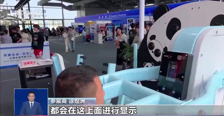 参展商 徐煜洲:这是我们体育公园最具代表性的三代智能器材,它的仪表会显示出当次的运动数据,同时运动数据会传输到体育公园的后台。我们的步道不单单是健走步道,而是智能步道。所谓智能步道是通过人脸识别,提供一个数据的参考。