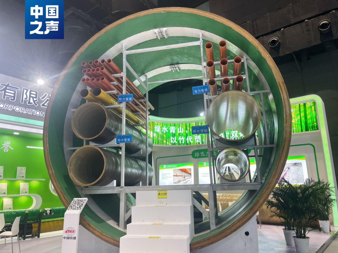 中铁十八局集团环保科技工程有限公司重庆生产基地经理邱月阳介绍,与传统的钢筋水泥管道不同,这种竹缠绕复合管廊是由竹子材料深加工制成,采用缠绕工艺,具有绿色低碳、施工效率高等特点,使用寿命可达50年,目前已经逐步应用在国内多个城市的管道建设中。