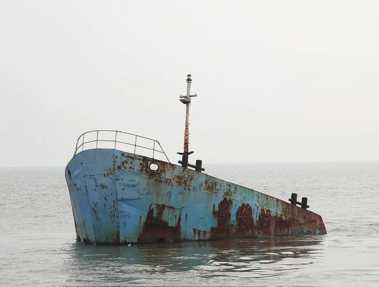 多年来,这艘船一半沉入海底,一半在海面显露。在有较多渔船经过的老龙沟深槽,犹如一座海上地标,无声地昭示着海上交通安全和海洋环境保护风险。