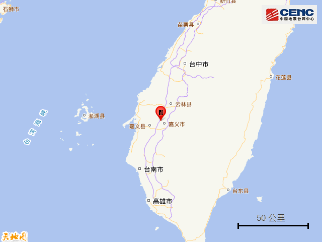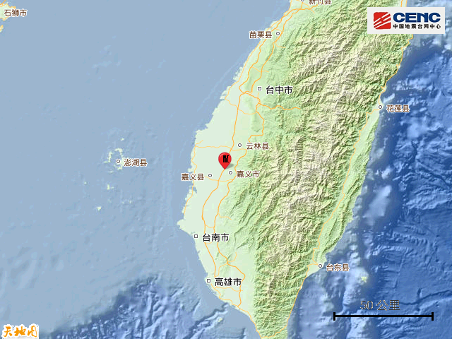 速报参数: 据中国地震台网正式测定,9月5日17时30分在台湾嘉义县发生4.9级地震,震源深度20公里,震中位于北纬23.51度,东经120.42度。