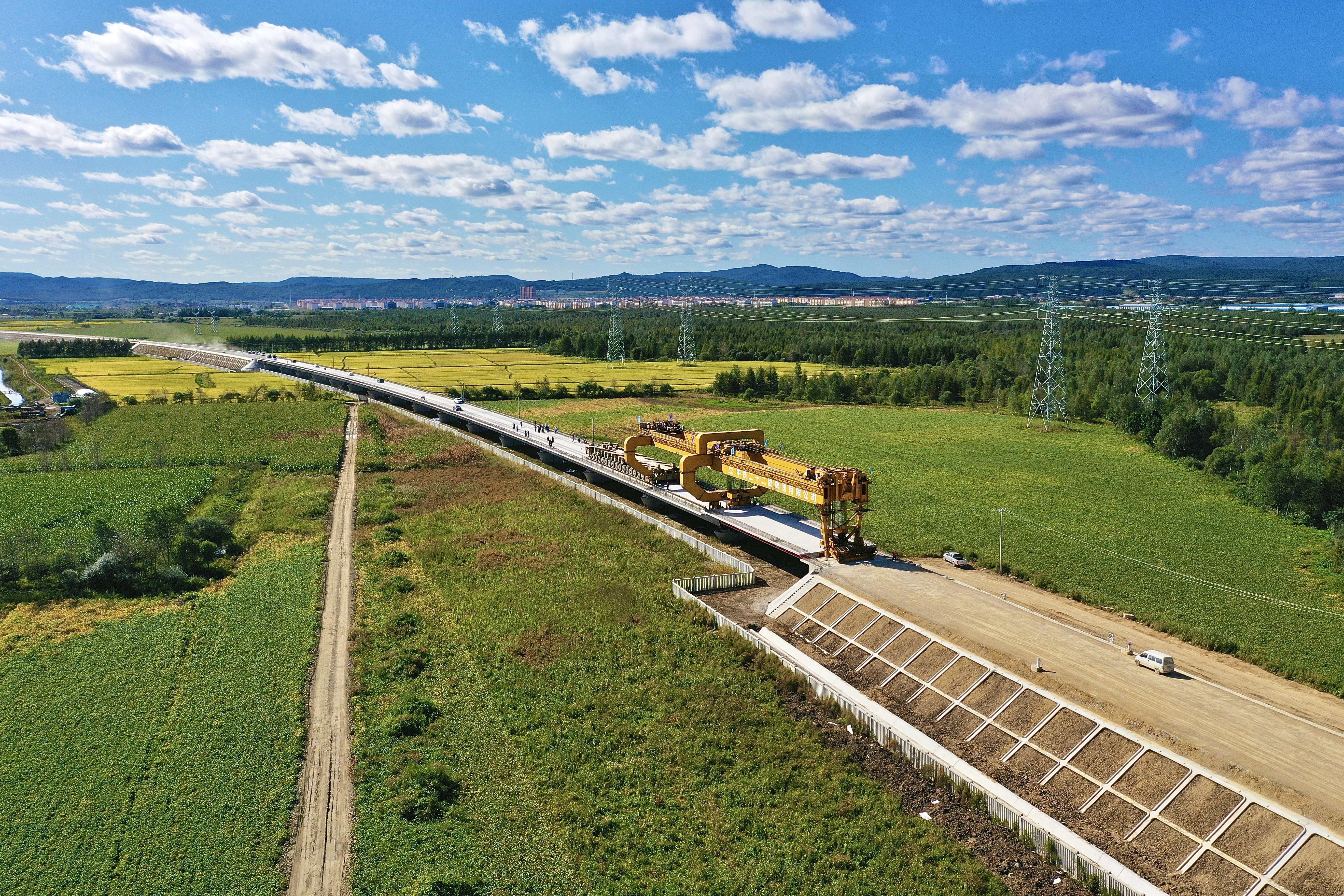 记者从中国铁路哈尔滨局获悉,9月5日13时,随着最后一榀重715吨,长32米箱梁精准落在指定位置,哈伊高铁(铁伊段)先行工程所有桥梁完成架设,为全线铺轨奠定坚实基础。