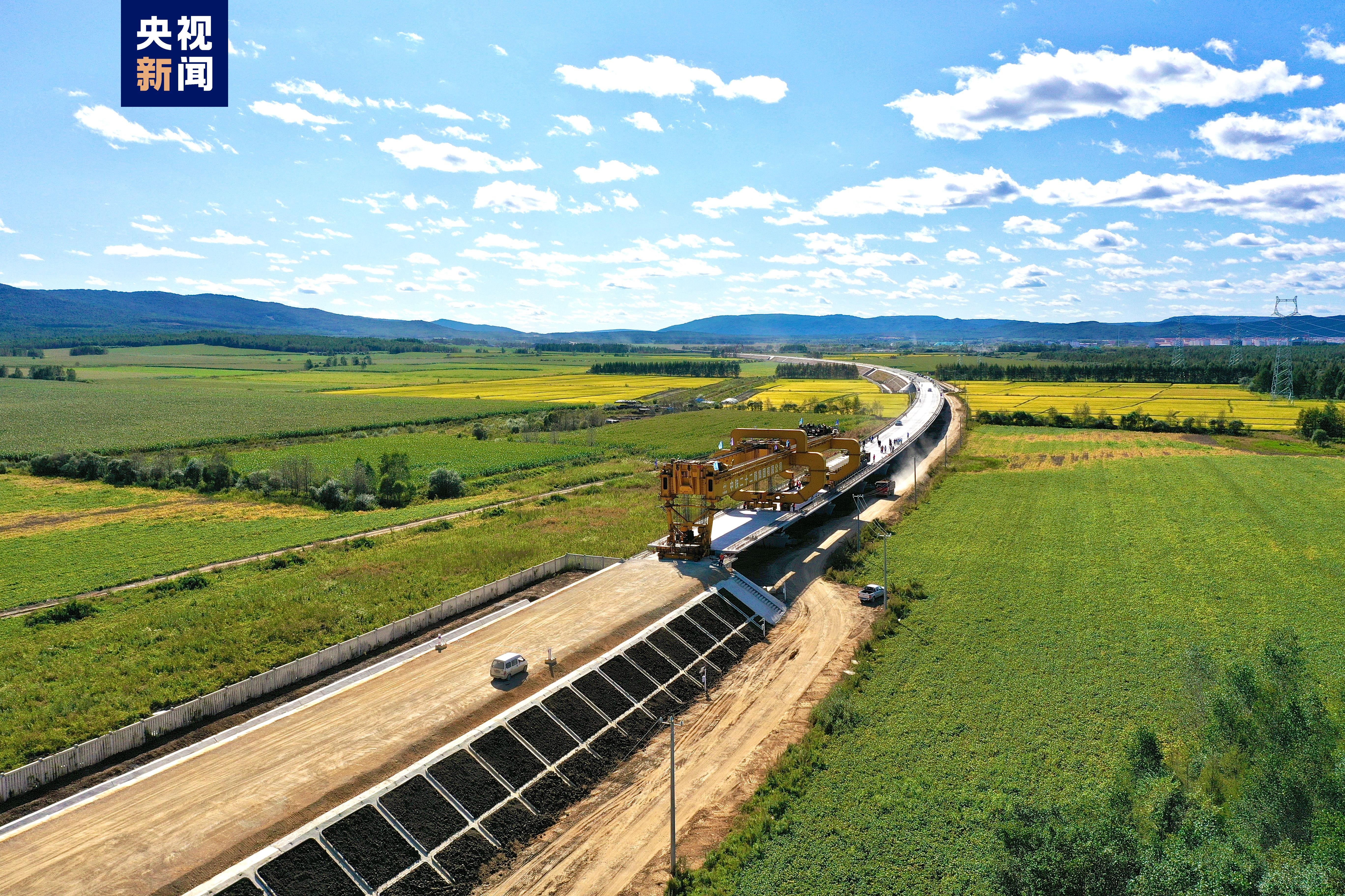 9月5日13时,在黑龙江省伊春市,哈伊高铁翠峦特大桥的施工现场,随着架桥机将最后一榀重715吨、长529米箱梁平稳精准地降落在16号桥台位置,标志着哈尔滨至伊春高铁项目铁力至伊春先行工程架梁施工全部完成,为全线铺轨奠定坚实基础。