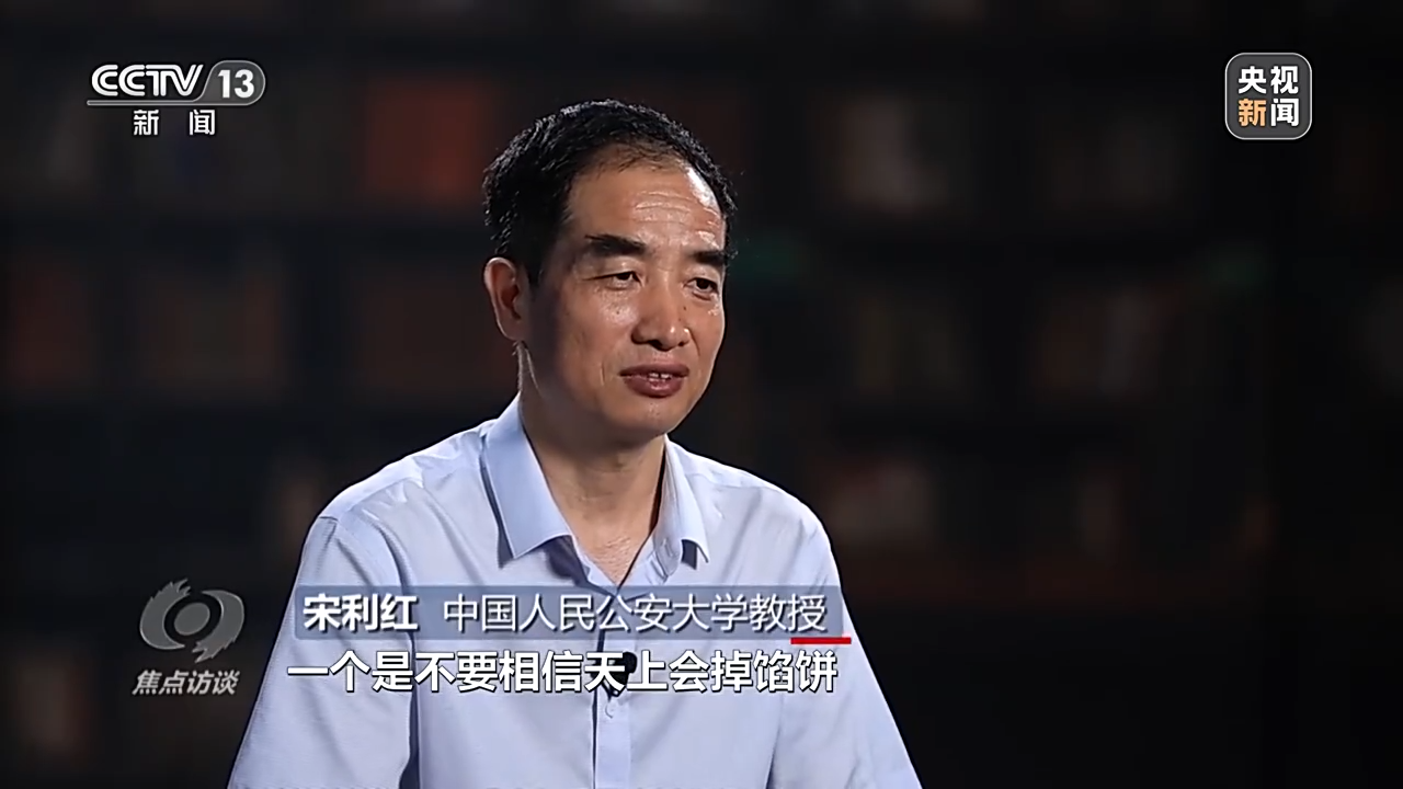 中国人民公安大学教授 宋利红:对于老百姓来说,一是不要相信天上会掉馅饼,不要抱有贪财的心理;第二是识别,返利也好,赚钱也好,这个钱从哪来的?往往从别人交的钱中作为依据,传销背离了基本的买卖行为。