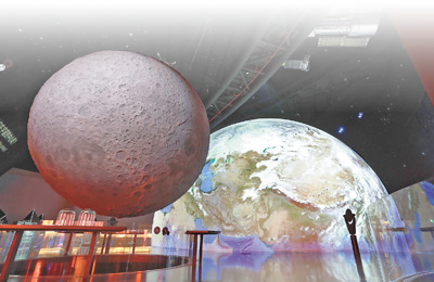 满天繁星笼罩下,硕大的地球和月球呈现眼前。地球表面上演着四季交替、风云变幻,月球表面则仿真显示坑洼不平的场景。不远处,巨大的投影屏上有一个红彤彤的大火球,靠近时,能感受到热浪扑面而来……在已开馆两年的上海天文馆(上海科技馆分馆)“家园”展区,参观者宛如置身浩瀚宇宙。
