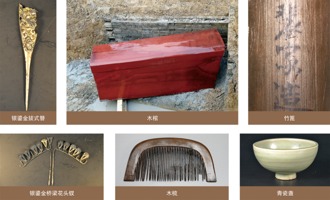 随葬丝、棉质的裳、袍、裤、鞋、囊、冥衣等各类服饰,以及砑花笺纸、造型雅致的各类錾花金银器具等,是国内近年来宋代考古的重要发现。目前,有关科研机构正在对出土文物进行科技修复和保护。
