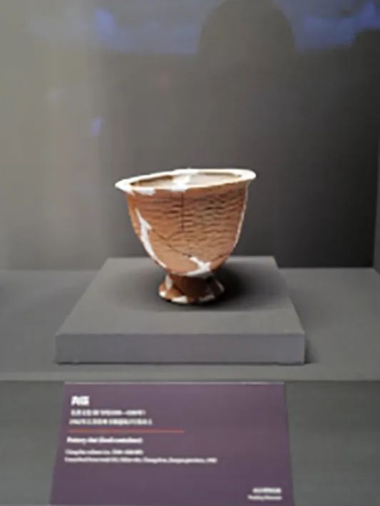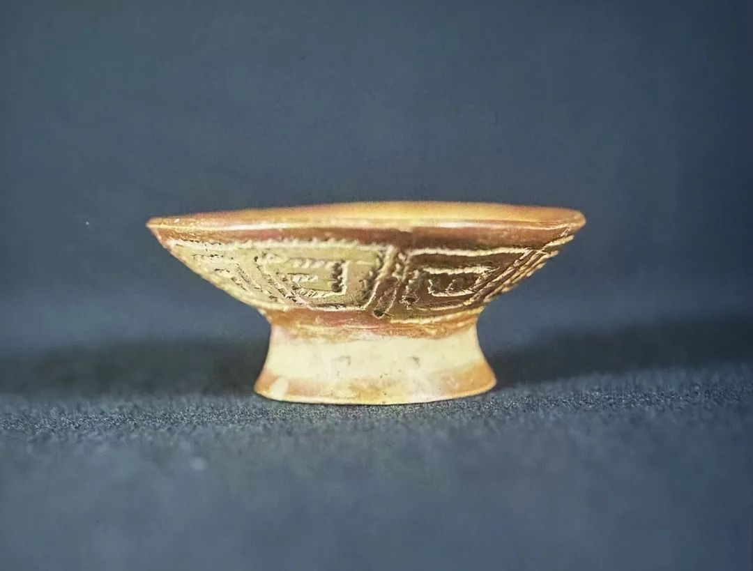 该件豆上的纹饰是国内目前所见云雷纹最早的例证。 泥质红陶,内外壁均经压磨抛光,外壁遍施红彩。刻印的云雷纹分四组等距排列,其中相对的一组刮去红色陶衣,与相邻一组形成对比和对称, 构成“四组八个”的布局,可能表现了古人早期的“阴阳”和“四方”观念。