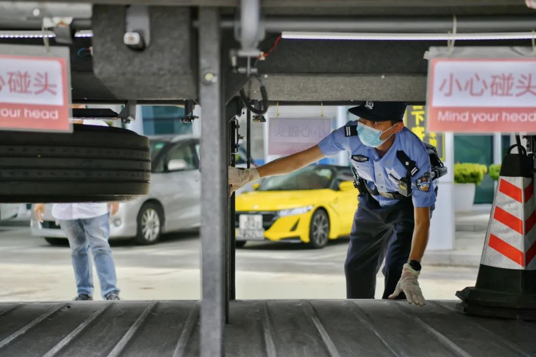深圳边检总站莲塘边检站移民管理警察开展车体检查。(冯超杰 摄)