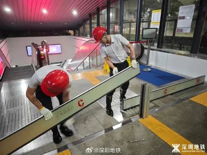 深圳地铁全线各站的沙包、水泵等防洪物资均已配备齐全,应急抢险队就位,实施24小时值班制度,全面做好相关防御准备。