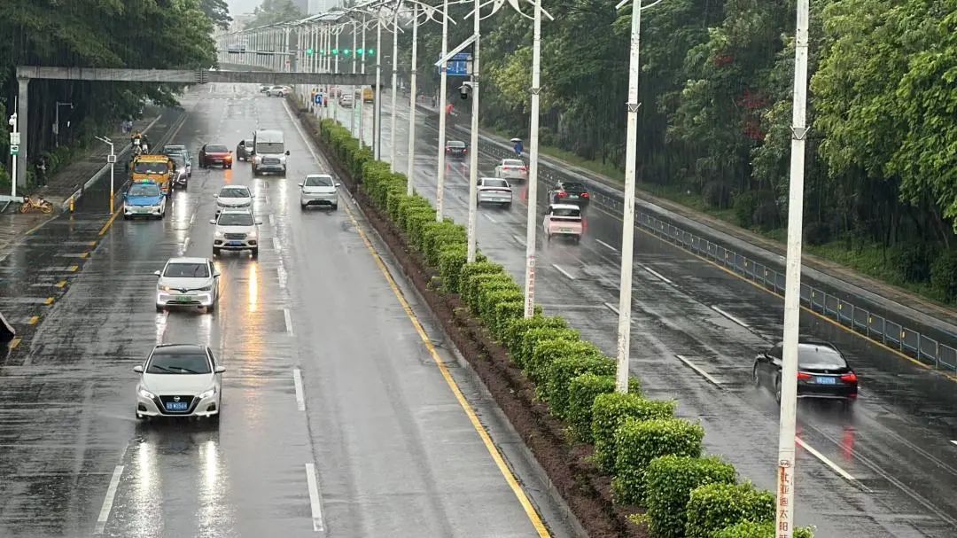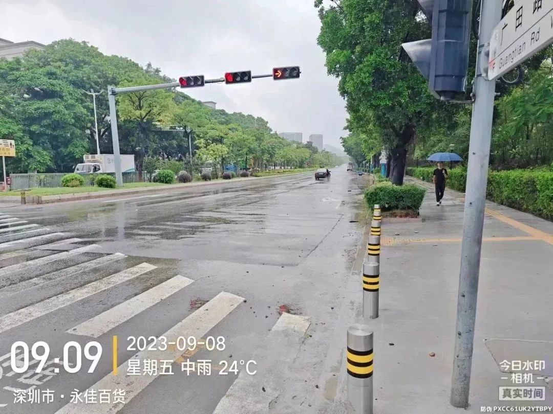 9月8日9时45分,大鹏新区葵涌街道雨势较小,路面无积水现象,交通秩序良好。