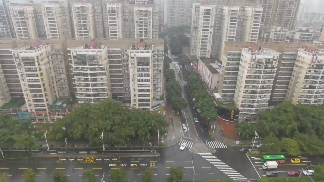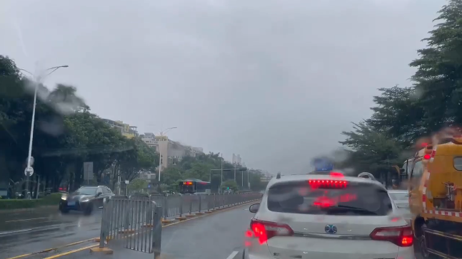▲龙岗中心城清林路两侧路面无积水,车辆有序通行。(图源:深圳新闻网)