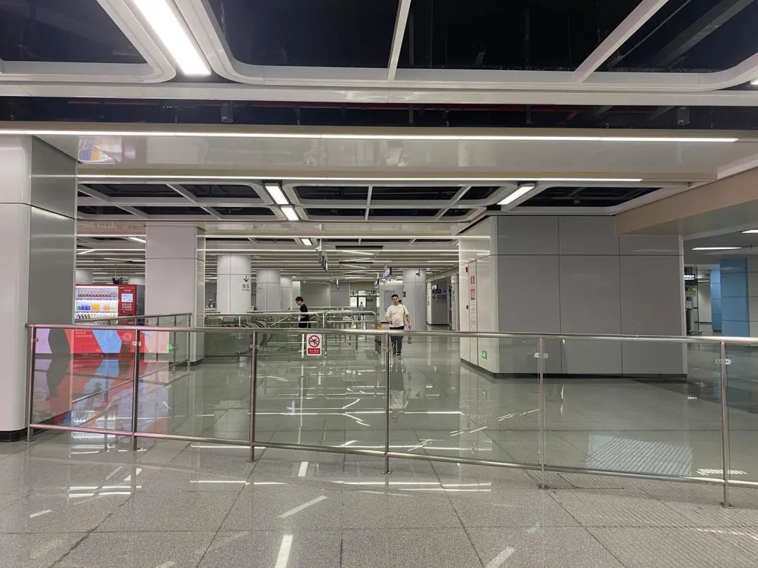 ▲灵芝地铁站运行正常,在电梯口等位置设置了“小心地滑”提示牌,并铺上了防滑垫。(图源:深圳新闻网)