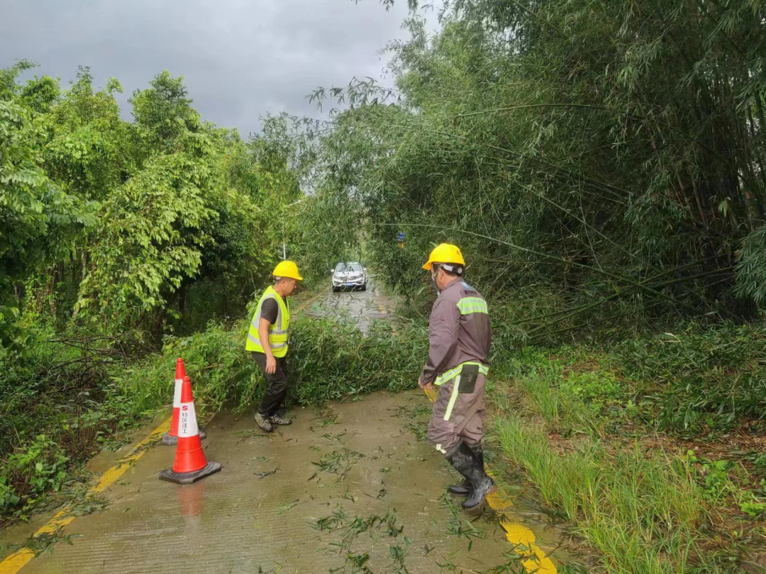 ▲市交通运输局深汕管理局工作人员在在赤甘段清理倒伏树木。