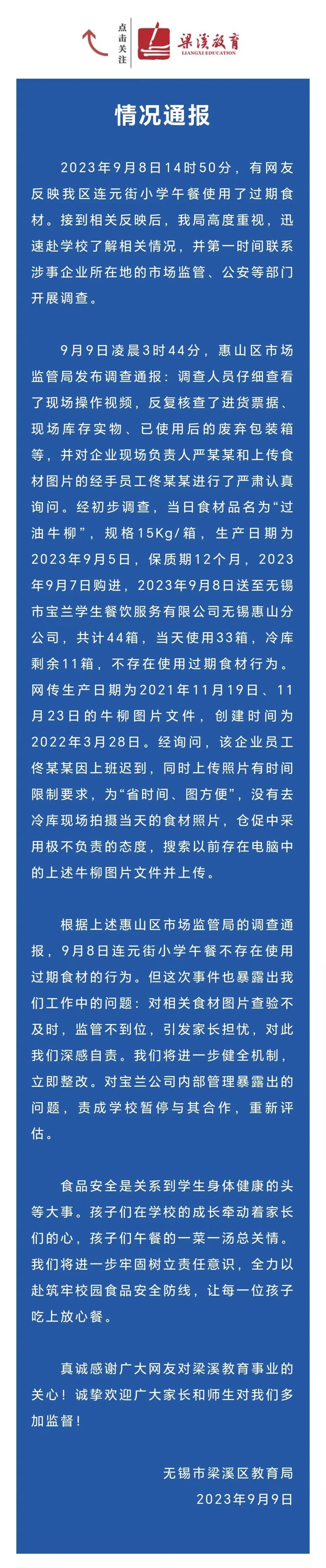 9月9日凌晨,无锡市梁溪区教育局微信公众号发布情况通报称: