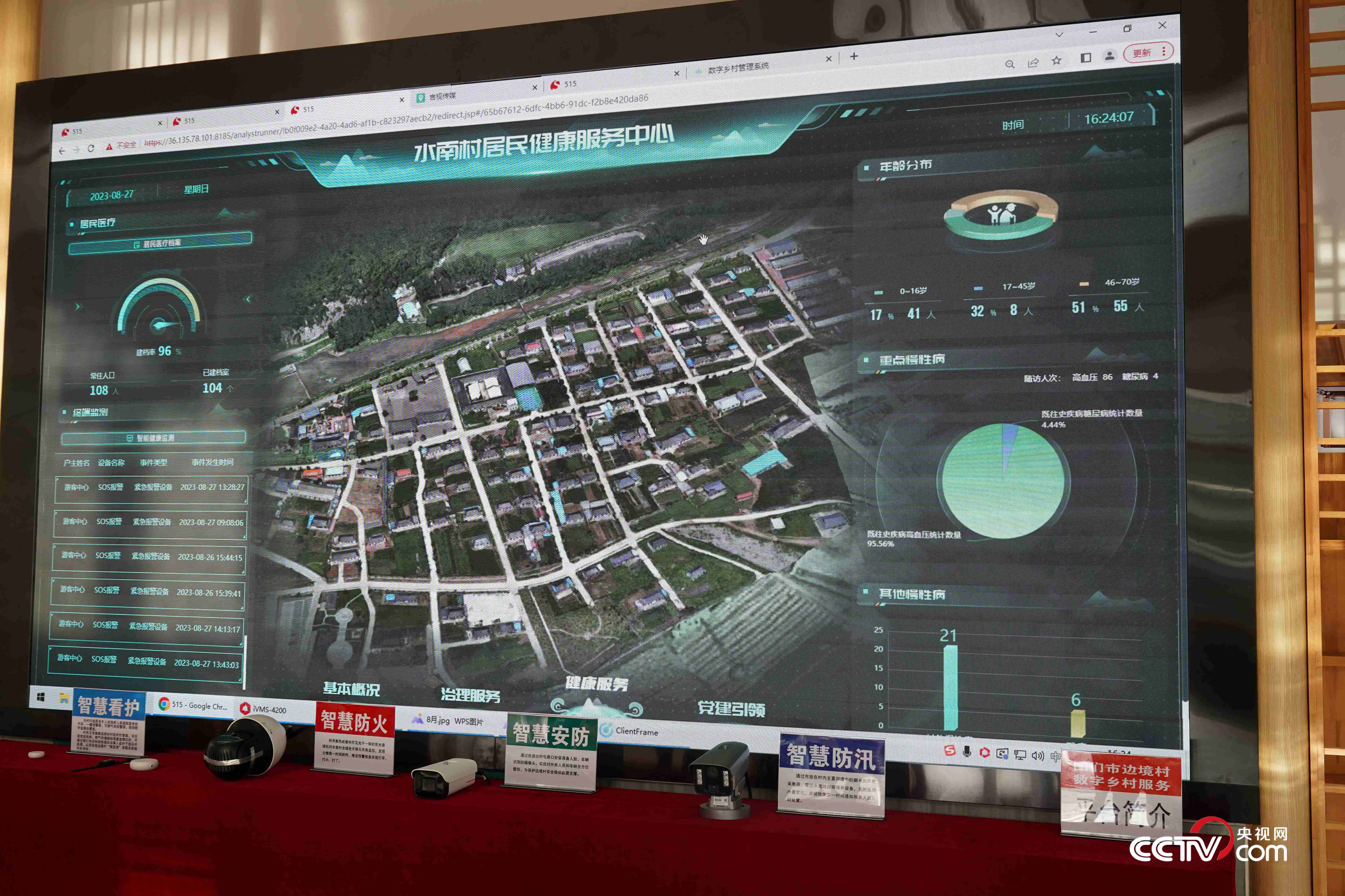 水南村村委会副主任金国星介绍,2022年,水南村实施数字乡村建设,将数字化手段与乡村治理有效结合,聚焦医疗、养老、安防、防汛、防火、环境整治等重点领域,打造了一套贴近边境乡村实际的综合化、智能化管理平台。