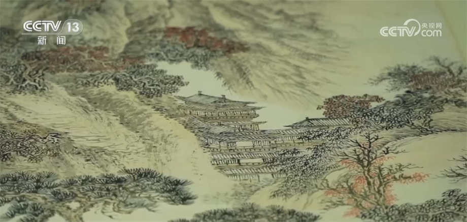 这幅《秋林书屋图》,是清初四王之一、非常著名的画家王翚在79岁的时候创作的,是珍贵的国家一级文物。这幅画呈现的就是文人在山中茅屋当中读书的一个情景。虽然300多年的时间过去了,但是展开这幅画,我们仍然可以看到非常鲜明的色彩,苍林翠竹与霜叶秋枫交相辉映,给我们带来非常美的视觉享受。