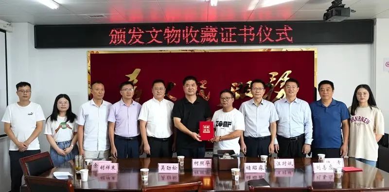 9月8日,岳西县文物保护中心举办向刘善应颁发文物收藏证书仪式。岳西县政府党组成员柯照华,县文物保护中心、县融媒体中心、温泉镇、解放村负责人参加会议。
