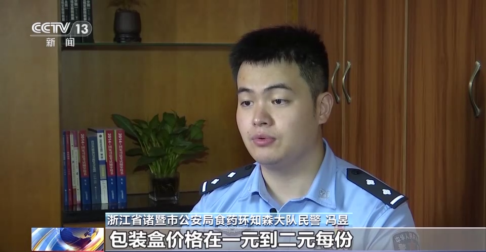 浙江省诸暨市公安局食药环知森大队民警冯昱:汤某等人从原料收购商那边收购来的原料,大概是一万余元,每克可以制作成五百份左右的轻盈素产品,平均原料的成本价格在二十到三十元每份。包装盒价格在一元到二元每份,每份轻盈素的成本在三十到四十元左右。等到消费者手中,往往要售卖到一千余元每针,其中的利润差可以达到四五十倍。