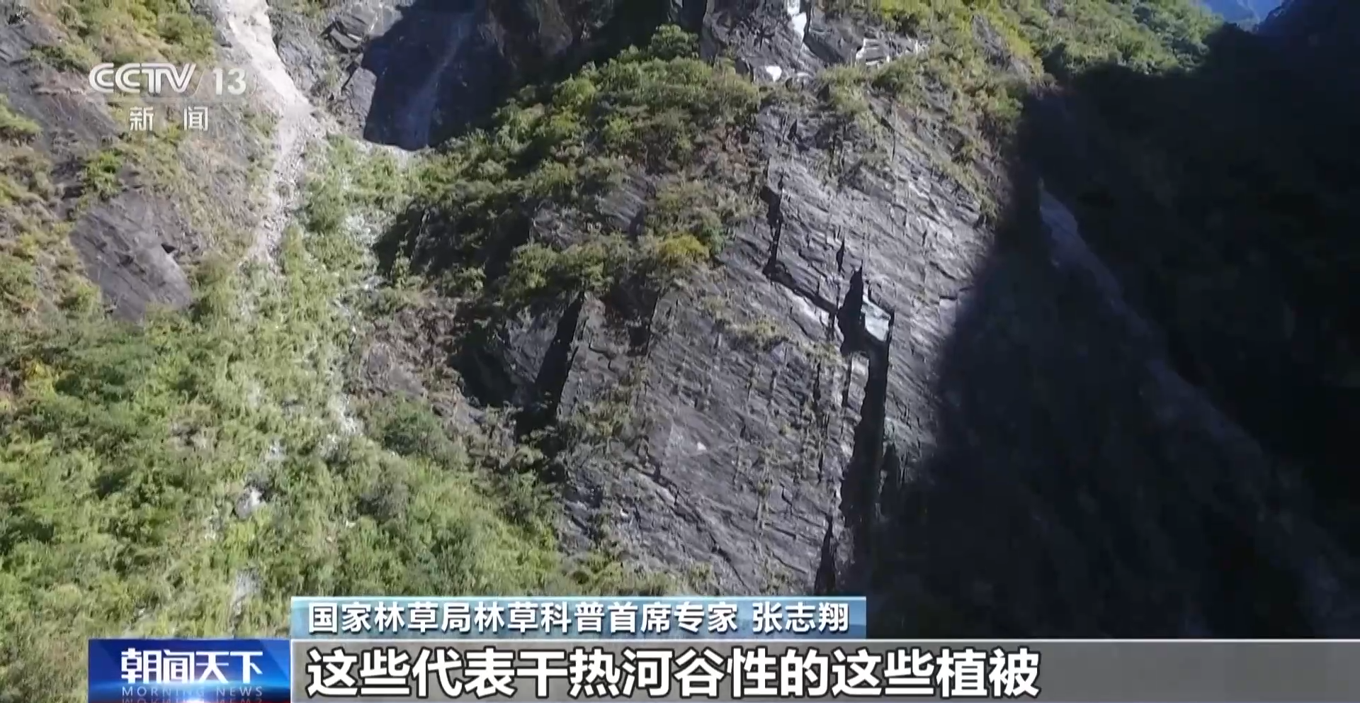 国家林草局林草科普首席专家 张志翔:另外一个垂直带谱,从它的东面,虎跳峡旁边有一个乡叫大具乡,属于干热河谷地带,有很多像锥连栎这些代表干热河谷性的植被,就在那地方出现了。 再往山上走,大面积的云南松林,而且云南松林的原始性非常强。但是再往高山走,基本上就并入到了丽江云杉和长苞冷杉林,基本上和南侧的植被垂直带合并了。