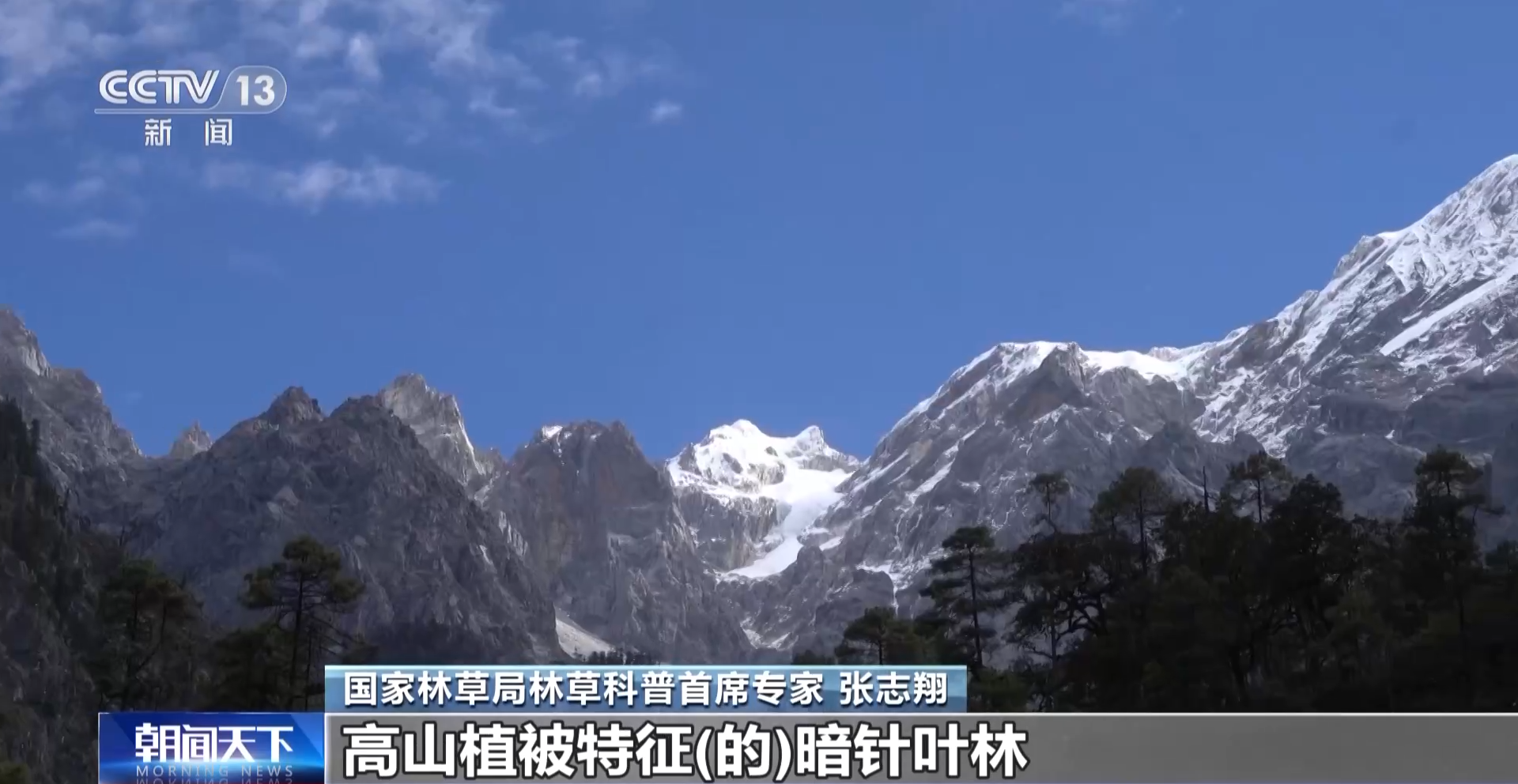 国家林草局林草科普首席专家 张志翔:玉龙雪山南侧以白沙(镇)为起点,海拔大概在2500(米),在低海拔区域主要是以黄背栎为主所形成的硬叶常绿阔叶林。再往上走就出现一些云南松林,过了云南松林再往上走就是针叶林了,我们也可以把它叫做暗针叶林,也可以叫寒温性针叶林。